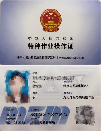 焊工证全称焊接与热切割作业证,准操项目是熔化焊接与热切割,是中华人民共和国应急部(原安监局)颁发的。考试内容分为理论和实操,两科都考80分以上才能通过,证书三年复审,提前一到三个月录系统,复审只需考理论。
